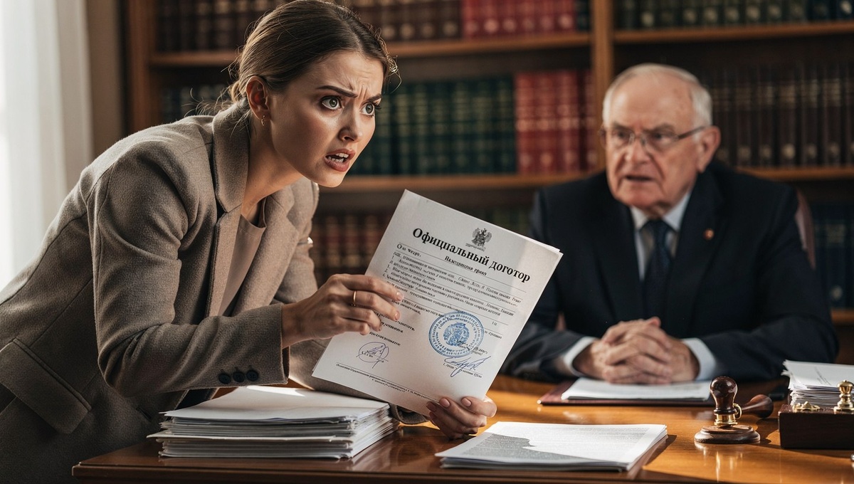 — Этот документ — фальшивка, — сказала она, стараясь, чтобы голос звучал твёрдо. — Я никому не давала доверенности. Я требую немедленно приостановить оформление.