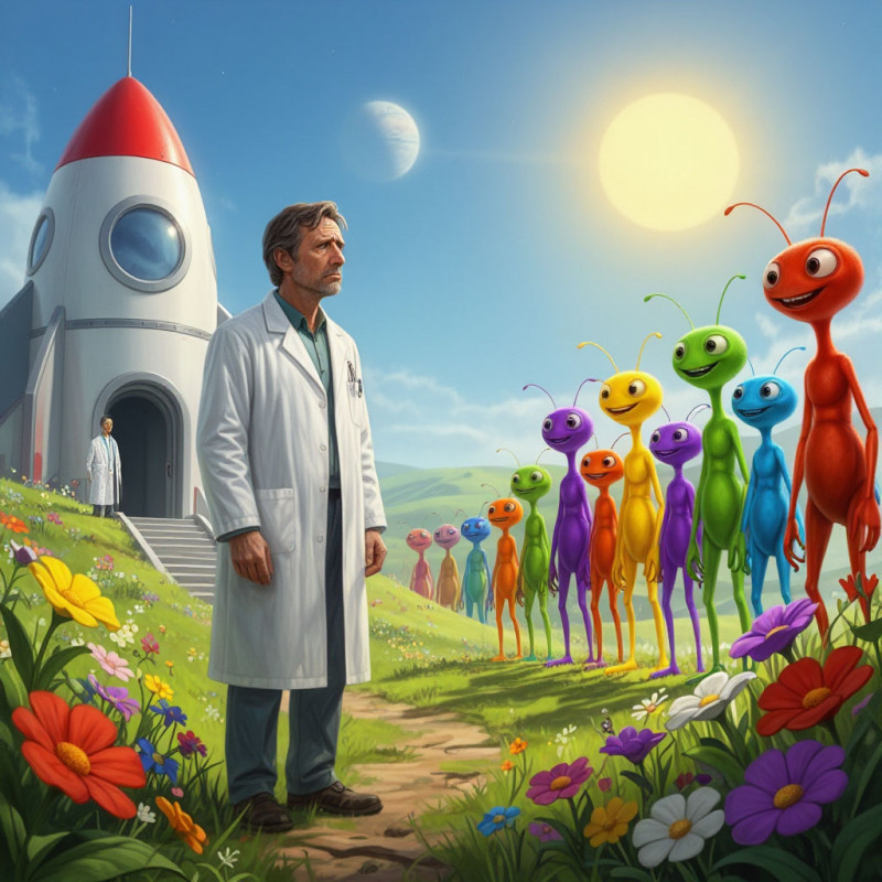 Врач спустился к почтительно вставшим влексам и отобрал двух синих рыбаков и двух желтых фермеров, жестом приказав следовать за собой. Более вежливо он попросил пройти в модуль двух красных охранников, приставленных к ним на всякий случай Бирюзовыми.