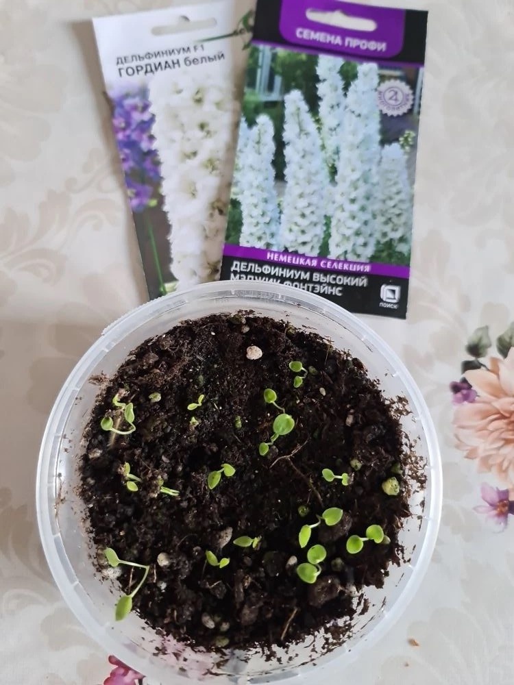 18 апреля. Похоже, моя давняя мечта о палисаднике, где всё будет белее снега, начинает сбываться. И всё благодаря сыну! Кто бы мог подумать, что его подарок — пакетики семян белых дельфиниумов — станут началом «великой белой революции» в моём саду. Как же мне хочется, чтобы в моём палисаднике раскинулось настоящее дельфиниумовое великолепие! Представляю себе эти стройные, высокие стебли, увенчанные пышными соцветиями, похожими на настоящие цветочные свечи. Они словно тянутся к небу, усыпанные множеством мелких белоснежных цветков, которые мерцают на солнце и создают ощущение чистоты и лёгкости. Осталась только одна, но очень архиважная деталь: чтобы в пакетике с семенами не оказался пересорт. А то я тут уже размечталась о белоснежном великолепии, а они возьмут и выдадут какой-нибудь неожиданный оттенок. Будет обидно, если вместо белых «свечей» получу, например, синие или фиолетовые. Так что теперь я держу кулачки и мысленно уговариваю производителя быть честным человеком. Ну или хотя б