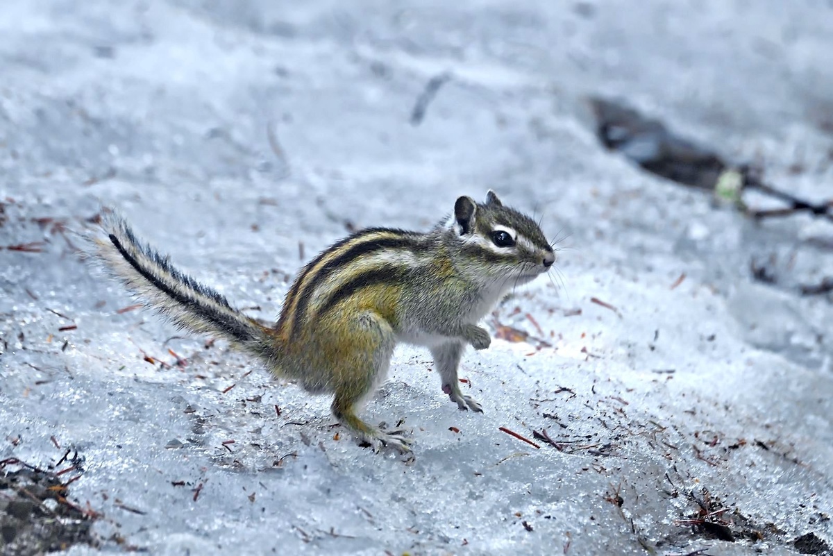 Иногда просыпаются зверьки и зимой - чтобы подкрепиться. Бурундуки выходят из спячки в нацпарке «Шушенский бор». Первую встречу с бодрствующим зверьком запечатлели на прошлой неделе. На снимке видно, что бурундук ещё не завершил процесс линьки: его шерстка тусклая.Из спячки бурундуки выходят по мере таяния снега и потепления. Зимой они иногда просыпаются, чтобы подкрепиться запасами из подземных «кладовых». К концу периода активного снеготаяния зверьки окончательно пробуждаются и выбираются из нор. Кстати, в условиях Горного кластера основу их питания составляют кедровые орешки. Фото / С. Чумаков