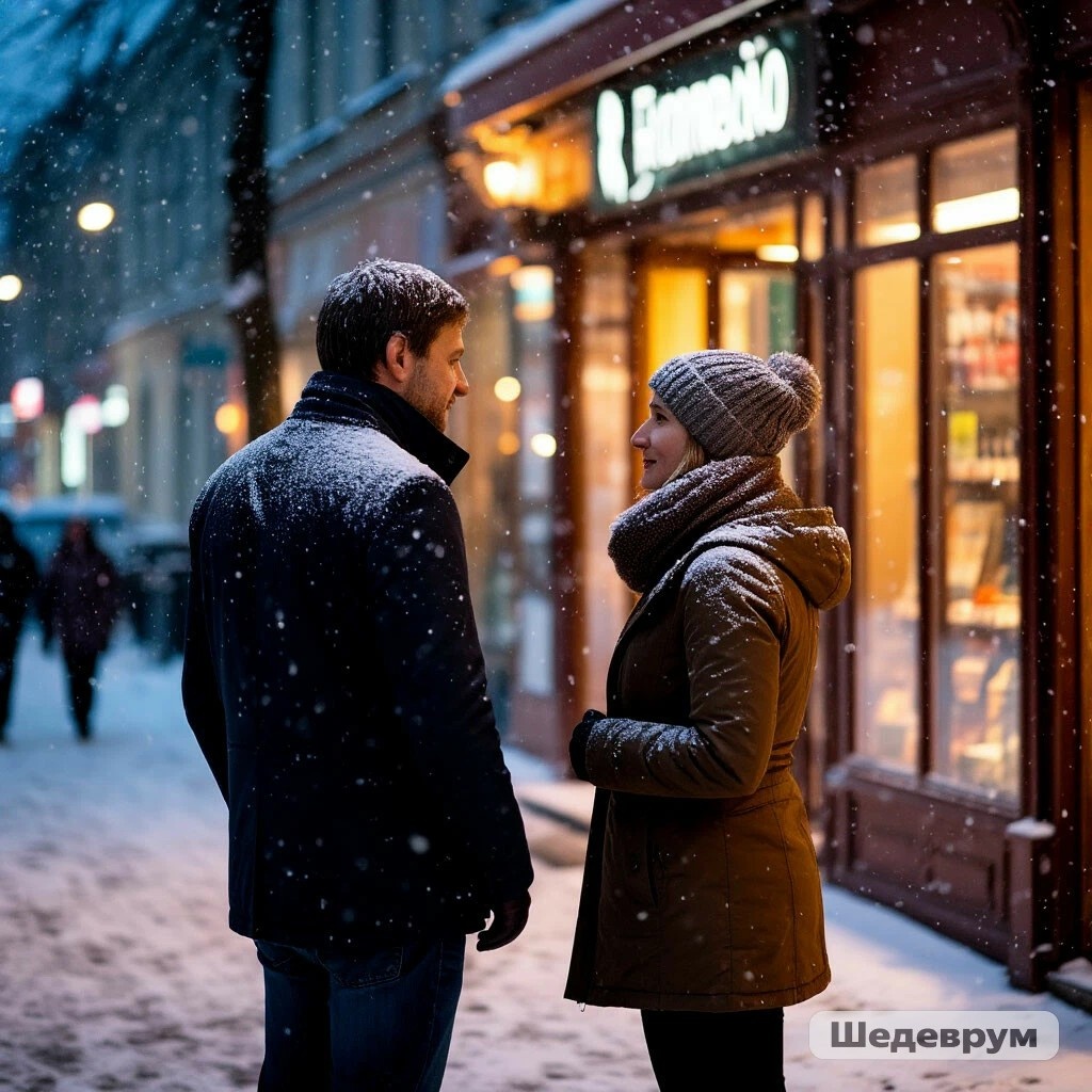 На улице начал падать снежок - не снежок, скорее как крупа с неба. Видимо, потепление ожидается. Мила уже спустилась с крыльца магазина, когда неожиданно поскользнулась и упала на колени. Тут же к ней подошёл мужчина, который шел в магазин, увидел, как она упала, помог подняться.