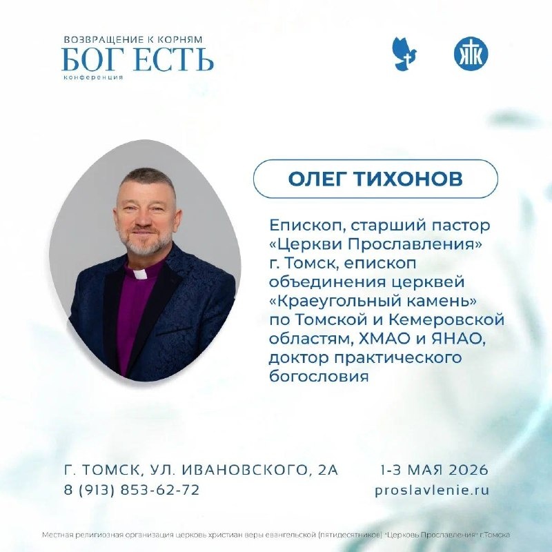 Добро пожаловать на ежегодную конференцию «Возвращение к корням: Бог есть», где мы поднимаем важные вопросы роста и развития церкви, темы проповеди Евангелия и способы служения разным поколениям! «И они постоянно пребывали в учении Апостолов, в общении и преломлении хлеба и в молитвах.» Деяниях 2:42 🎤 СПИКЕРЫ: 🔹 Гарик Кургинян — епископ, старший пастор церкви «Божий ковчег» (г. Черкесск), председатель комиссии по укреплению межнациональных и межконфессиональных отношений Общественной палаты КЧР. 🔹 Тихонов Олег — епископ, старший пастор «Церкви Прославления» (г. Томск), полномочный представитель Начальствующего епископа РОСХВЕ (п) в Томской области, епископ объединения церквей «Краеугольный камень» по Томской и Кемеровской областям, ХМАО и ЯНАО, религиовед, преподаватель, доктор практического богословия. ТЕМЫ СЕМИНАРОВ: - служение разным народам Гарик Кургинян - епископ, старший пастор церкви «Божий ковчег» (г. Черкесск) - управление финансами в церкви по-библейски Юлия Геннадьев
