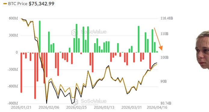 📉 BTC: ПРИТКИ В СПОТОВЫЕ ETF ЗАСТЫЛИ, МАРТОВСКИЙ МАКСИМУМ В ФОКУСЕ