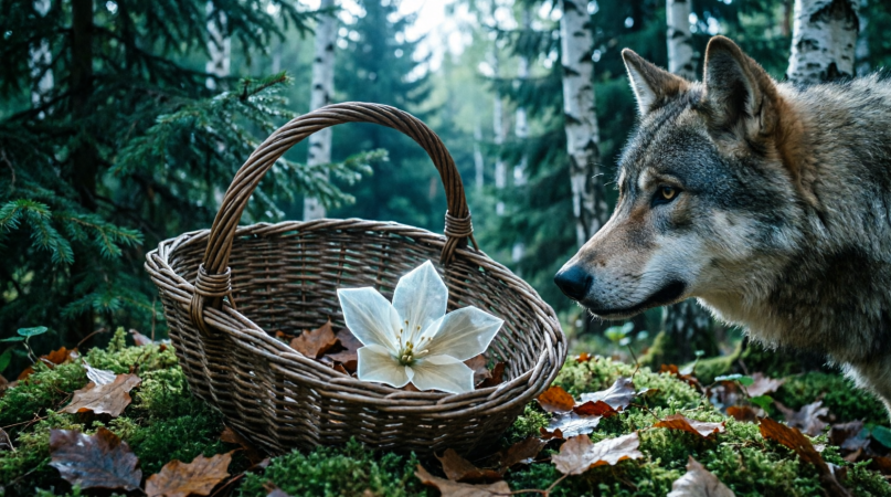 Хлеб, несколько яблок, немного орехов — она сама не могла объяснить логику выбора, просто взяла то, что было. Сверху положила записку, подумала секунду и убрала её обратно. Что бы она написала? «Спасибо за волков»? «Вы не против, если я буду знать о вас»?