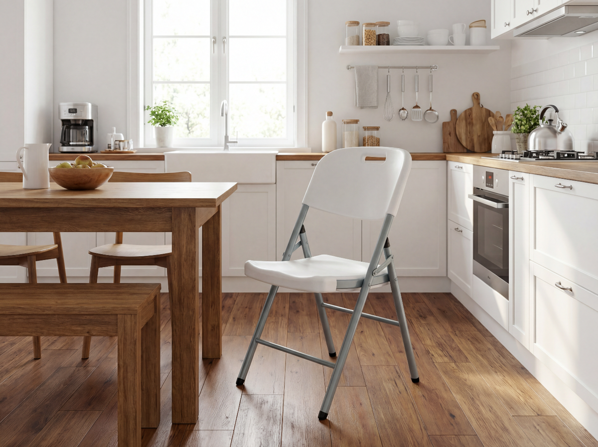 Как выбрать складной стул для дачи и кейтеринга? Разбираем характеристики на примере модели из HDPE Стул складной белый артикул: СС-01 от ко