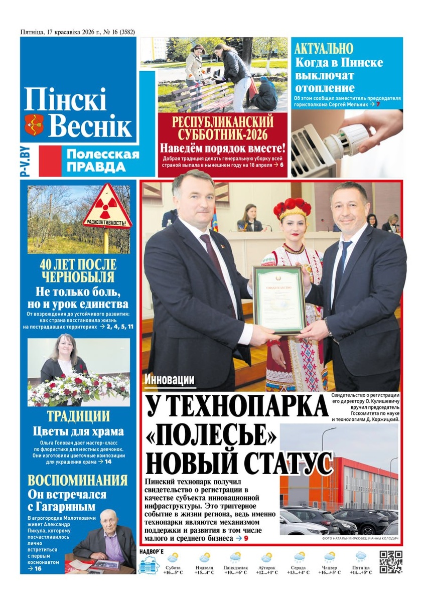 » ➡️Друзья, в этот раз выпуск - огонь. Серьёзно. Тут и память, и политика, и армия, и даже человек, который лично жал руку Гагарину. Листайте, что внутри: ⏩Сенатор Игорь Луцкий провёл единый день информирования сразу на нескольких площадках в Пинске. В газете - его слова и эмоции. Отдельно - как Пинский район преодолевает последствия аварии. ⏩С сессии горсовета - работа с избирателями, инновации, здоровье нации. Без воды, по делу. ⏩Пинщина принимала республиканский краеведческий форум - сохраняем связь поколений, и это не просто слова. ⏩Итоги отопительного сезона 2025–2026 - на заседании горисполкома посчитали, кому было тепло, а кому - не очень. ⏩Республиканская молодёжная ярмарка вакансий - первые шаги в профессию. Более тысячи студентов уже в теме. ⏩Человек, который встречался с Гагариным - да-да, такой живёт в Молотковичах. Александр Пикула. Не пропустите! ⏩Уникальный памятник человеческой веры - домовая церковь в Гончарах, которой нет на Яндекс-картах. Но она есть. ⏩Пинс