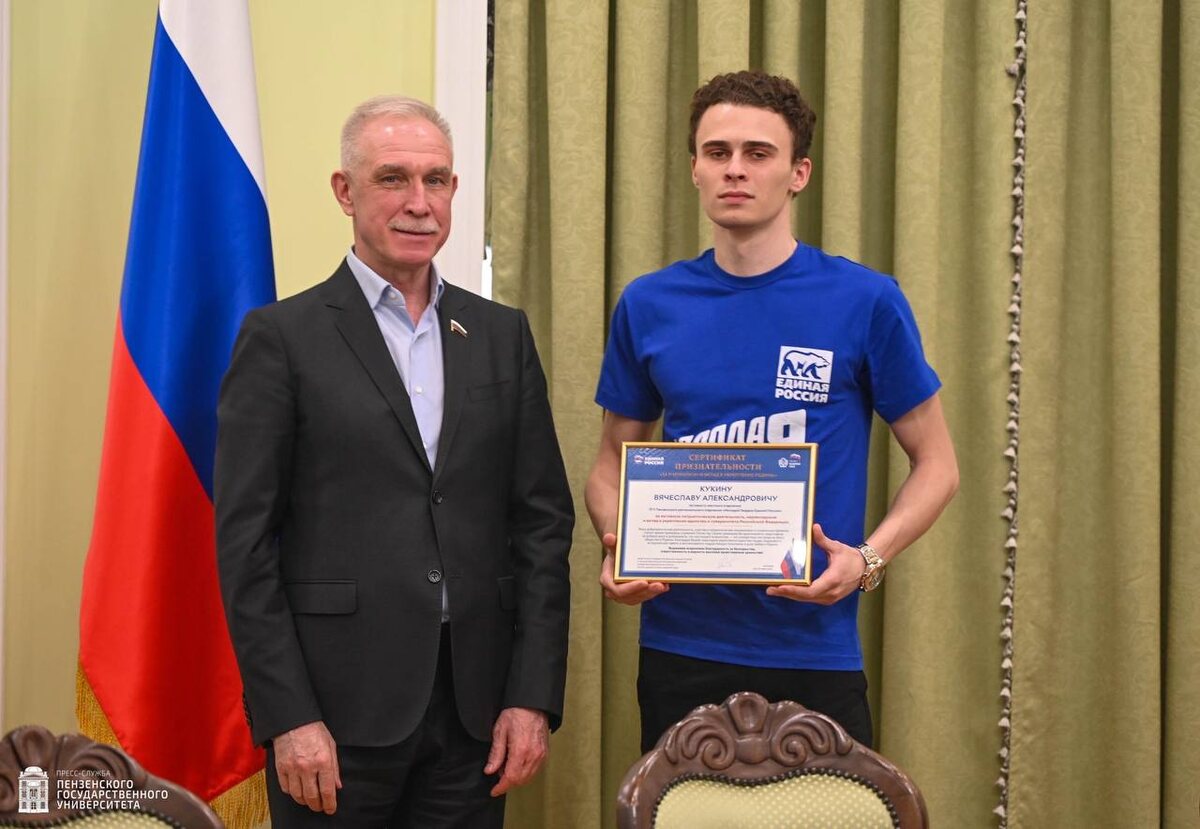 Активисты «Молодой Гвардии» и «Волонтёрской Роты» ПГУ отмечены наградами за вклад в развитие Родины