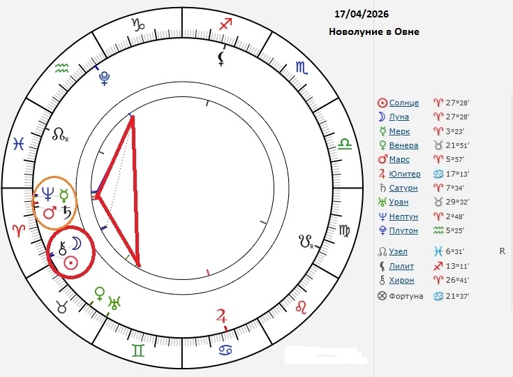 Новолуние с участием Хирона-это рана,которая становится силой.Делай,даже,если страшно.Закладываем самые смелые свои планы.Диспозитор Новолуния-Марс также в Овне,в сильном космическом статусе.Такое положение планет поможет преодолеть страх и сделать первый шаг.Ваша уязвимость,сомнения,душевные раны-это теперь ваша сила,вы принимаете решение выйти из роли"маленького и удобного",вы начинаете разговор,который откладывали,вы начинаете новый проект,вы заявляете о себе смело.Овен даст энергию для ваших действий.В это время можно переписать свою внутреннюю историю.