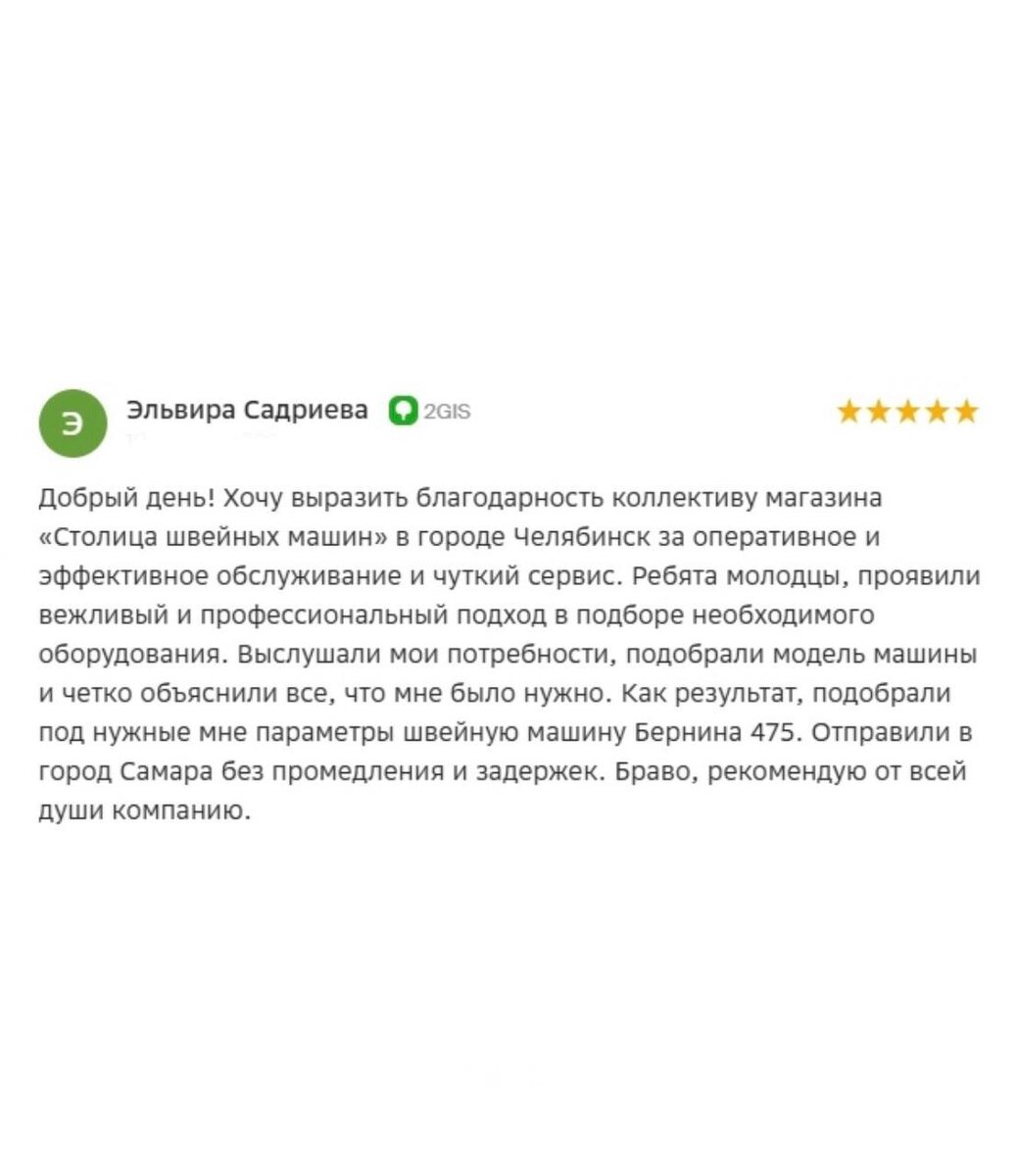!🌸 Благодарим за доверие и такой приятный отзыв — для нас это очень ценно 🙏🏻 Рады, что смогли не просто помочь с покупкой, а действительно подобрать подходящую модель и подробно всё объяснить. Мы всегда стараемся, чтобы выбор техники был понятным и комфортным, даже если наш покупатель находится в другом городе — поэтому особенно приятно, что это отметили ❤️ Пусть Bernina 475 приносит удовольствие в работе и вдохновляет на новые идеи ✨ А если появятся вопросы — мы всегда на связи!👌🏻