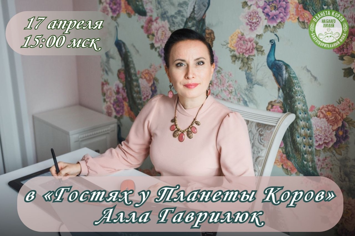 ✨ Сегодня в 15:00 мск смотрите прямой эфир в «Гостях у Планеты Коров» с гостьей Аллой Гаврилюк