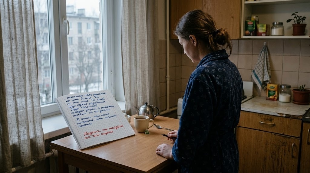 Ящик стола в прихожей – общий, туда складывают всё подряд: батарейки разных размеров, ключи от почтового ящика, которым никто не пользуется, чеки из супермаркета, запасные пуговицы от пальто, которое давно выброшено. Я уже почти закрыла его обратно, когда увидела тетрадный лист в клетку, сложенный вдвое. Почерк на нём был чужой – крупный, с нажимом, буквы ровные и одинаковые, как у человека, который писал от руки всю жизнь и не видит в этом ничего особенного.