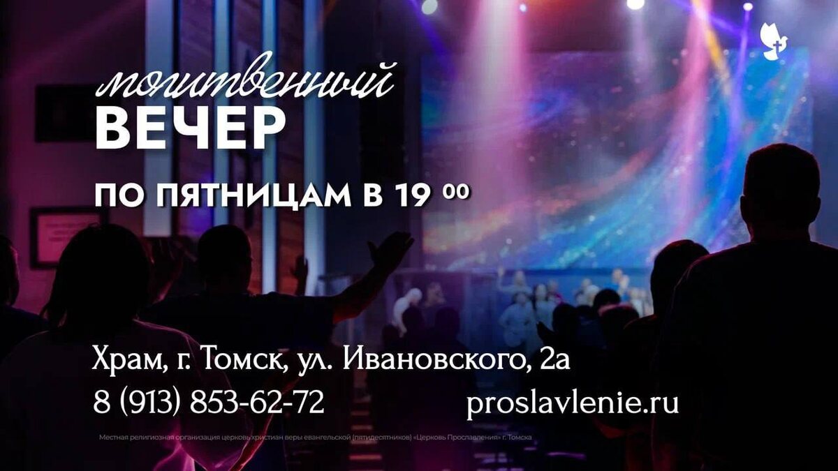 Дорогая церковь, приглашаем вас сегодня на молитвенный вечер, где будет служить наша пророческая команда! ✨ в 19:00 📍 Храм, г. Томск, ул. Ивановского, 2а 💙 Это будет время Божьей славы и благословений! Приходите сами и приглашайте всех, кто ищет встречи с Господом.