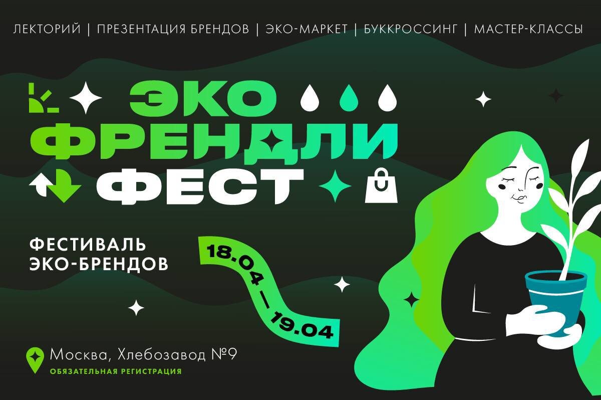 ! Бесплатный билет для ваших читателей здесь: https://eco-friendly-fest.timepad.ru/event/3848488. 18 и 19 апреля на «Хлебозаводе №9» (пространство «Бойлерная») в Москве пройдёт 12-й Эко Френдли Фест – городской фестиваль экопривычек, осознанного потребления и устойчивого образа жизни. В этот раз на фестивале будет представлена расширенная программа специально для детей 6+ лет. Лекции, мастер-классы, выставка арт-треша, эко-маркет, обмен одеждой и книгами, выездной музей мусора, квизы и призы – программа Эко Френдли Фест каждый раз максимально насыщенна. По традиции на фестиваль можно принести как распространенные, так и сложные видов отходов, от винных пробок до блистеров от таблеток, а заодно узнать, как утилизировать различные виды мусора в обычной жизни. Вход свободный, обязательная предварительная регистрация на сайте ecofriendlyfest.ru.