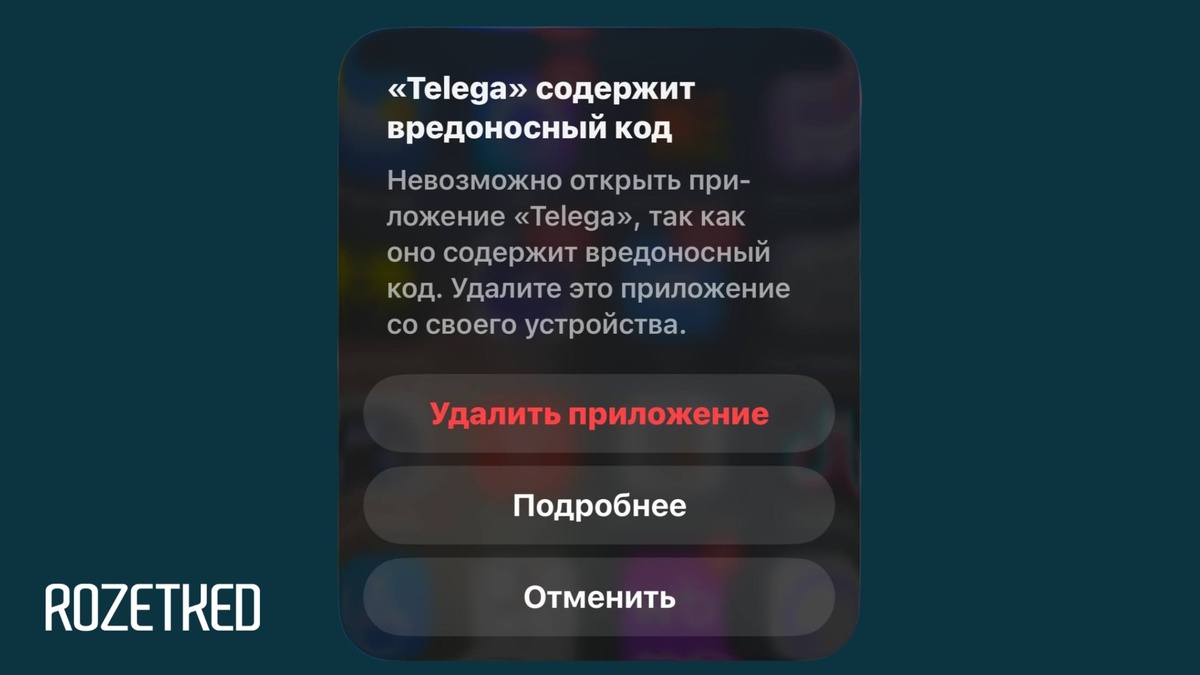 Telega больше не поедет — Apple начала блокировать клиент Пользователи в сети делятся скриншотами, где при попытке запуска нашумевшего стороннего Telegram-клиента на iPhone всплывает предупреждение, что приложение содержит вредоносный код и предлагает удалить программу. Помимо того, что использование Telega небезопасно, теперь мы узнали, что Apple может блокировать приложения таким образом. 💼 Rozetked | Подписаться