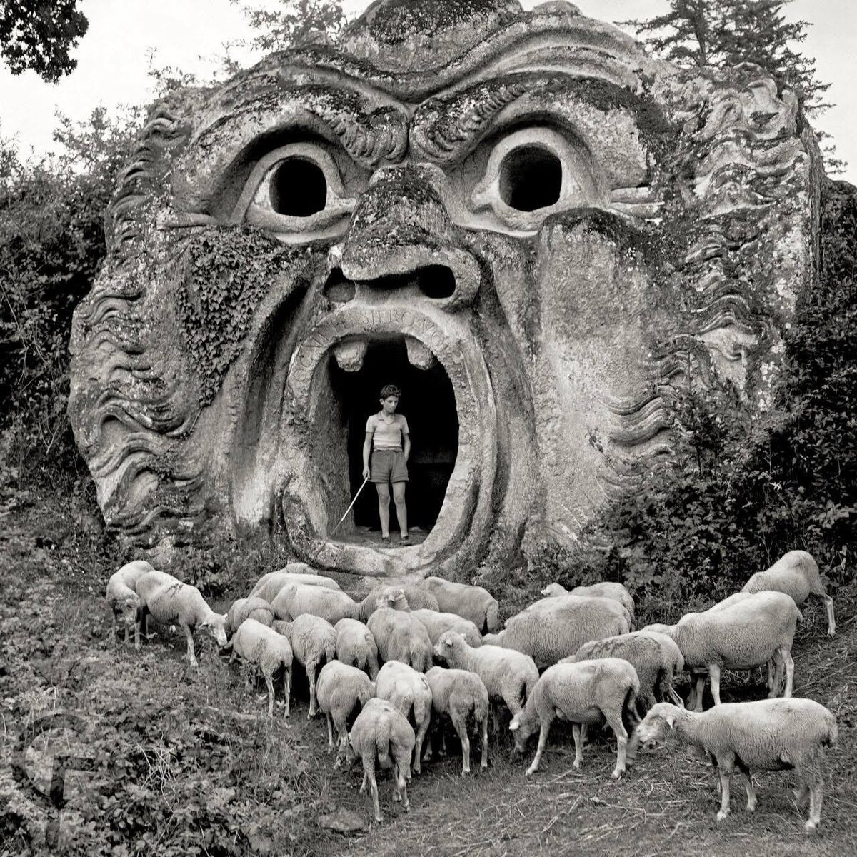 Италия, 1952 Герберт Лист сфотографировал это в 1952 году — пастух в заброшенной священной роще где-то в Италии. Овцы, старые деревья, рассеянный свет. Ничего лишнего. Лист — немецкий фотограф, которого часто называют мастером «фотографического сюрреализма». Он умел находить в обычных сценах что-то застывшее, почти потустороннее. Не постановочное — а именно найденное: момент, в котором реальность сама становится похожей на сон. На этом снимке работает именно это. Пастух не позирует — он просто есть. Роща называется священной, но давно заброшена: боги ушли, люди почти ушли, остались только овцы и человек с ними. В Италии такие рощи — luci sacri — существовали с античных времён. Это были места, посвящённые богам: в них нельзя было рубить деревья, охотиться, нарушать тишину. После христианизации многие из них просто опустели — сакральный статус исчез, а деревья остались. И вот в одну из таких рощ в 1952 году заходит пастух со стадом. Совершенно буднично. Не подозревая — или не думая о