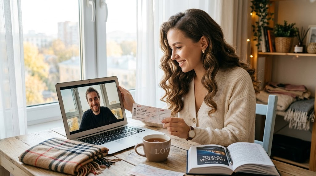 Она несколько лет любила мужчину по голосу, взгляду и вечерним разговорам в скайпе. И сейчас она ехала к нему с той самой тревогой, которая у женщин умеет сидеть тихо, а внутри уже устроила целое собрание. Ей казалось, что главный риск этой поездки прост: вдруг в жизни он окажется не тем человеком, которого она полюбила через экран. Но сюрприз ждал совсем в другом месте.