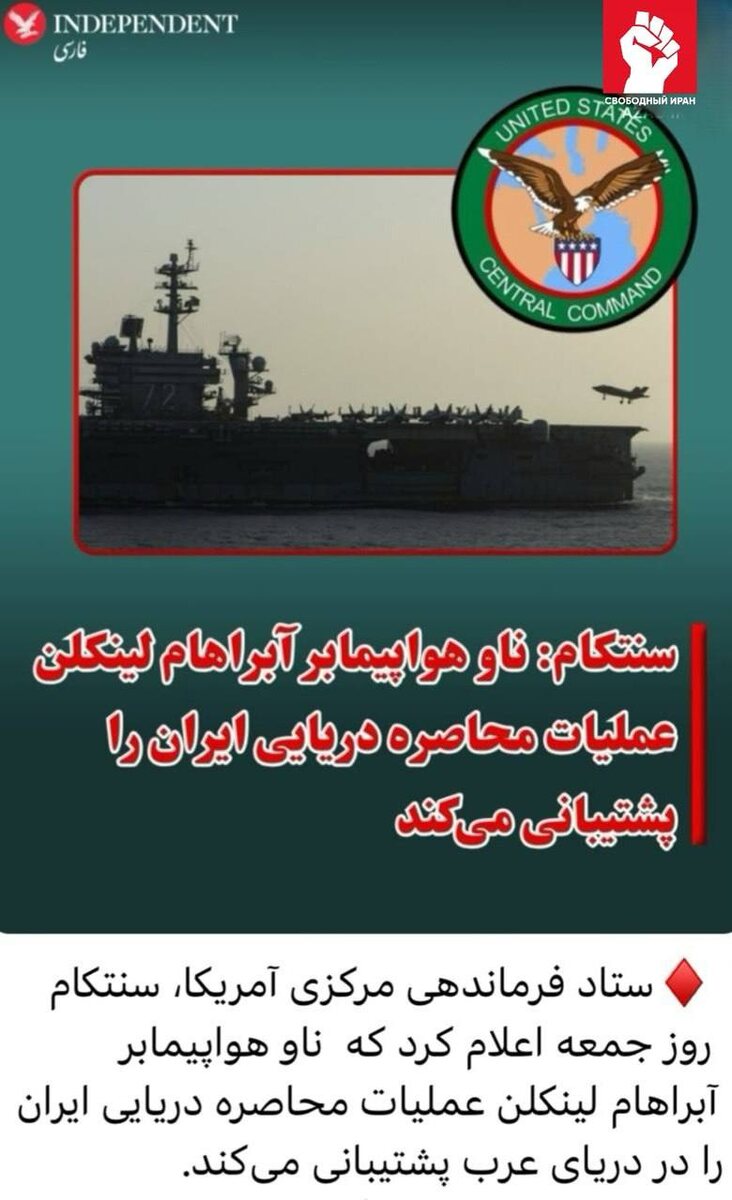 🇺🇸 CENTCOM: USS Abraham Lincoln поддерживает морскую блокаду 🇮🇷 Ирана