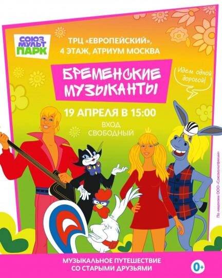 » 🗓 19 апреля в 15:00 💸 бесплатно 🏛 ТРЦ Европейский, 4 этаж, атриум Москва 📍 площадь Киевского вокзала, 2 Ничего на свете лучше нету, чем бродить друзьям по белу свету! Поэтому мы отправляемся в большое музыкальное путешествие со старыми друзьями. Музыкальная игровая программа: ● Игра «По следам Бременских музыкантов» ● Игра «Продолжи песню» ● Танцевальные батлы ● Музыкальная викторина ● Дискотека с Трубадуром и Принцессой А ещё блеск-тату для настоящих звёзд эстрады и Мастерская от Принцессы, где мы будем делать музыкальные гремелки-перкуссии из бумажных стаканчиков. ➡️ ПОДРОБНОСТИ ⬅️ ❗️ Детский TG | 📲 Детский Max