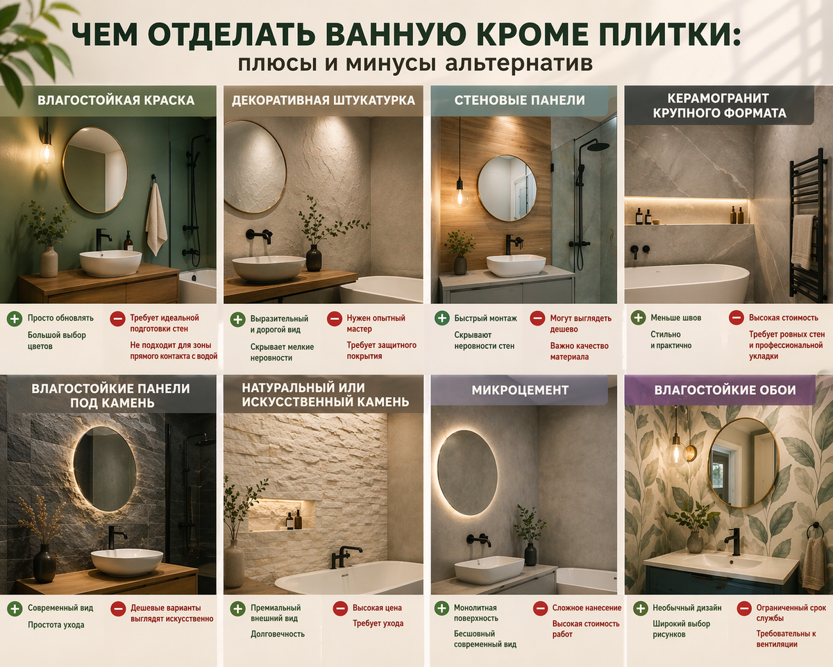Разберем честно: чем можно заменить плитку в ванной, где это смотрится хорошо, а где потом начинаются проблемы.