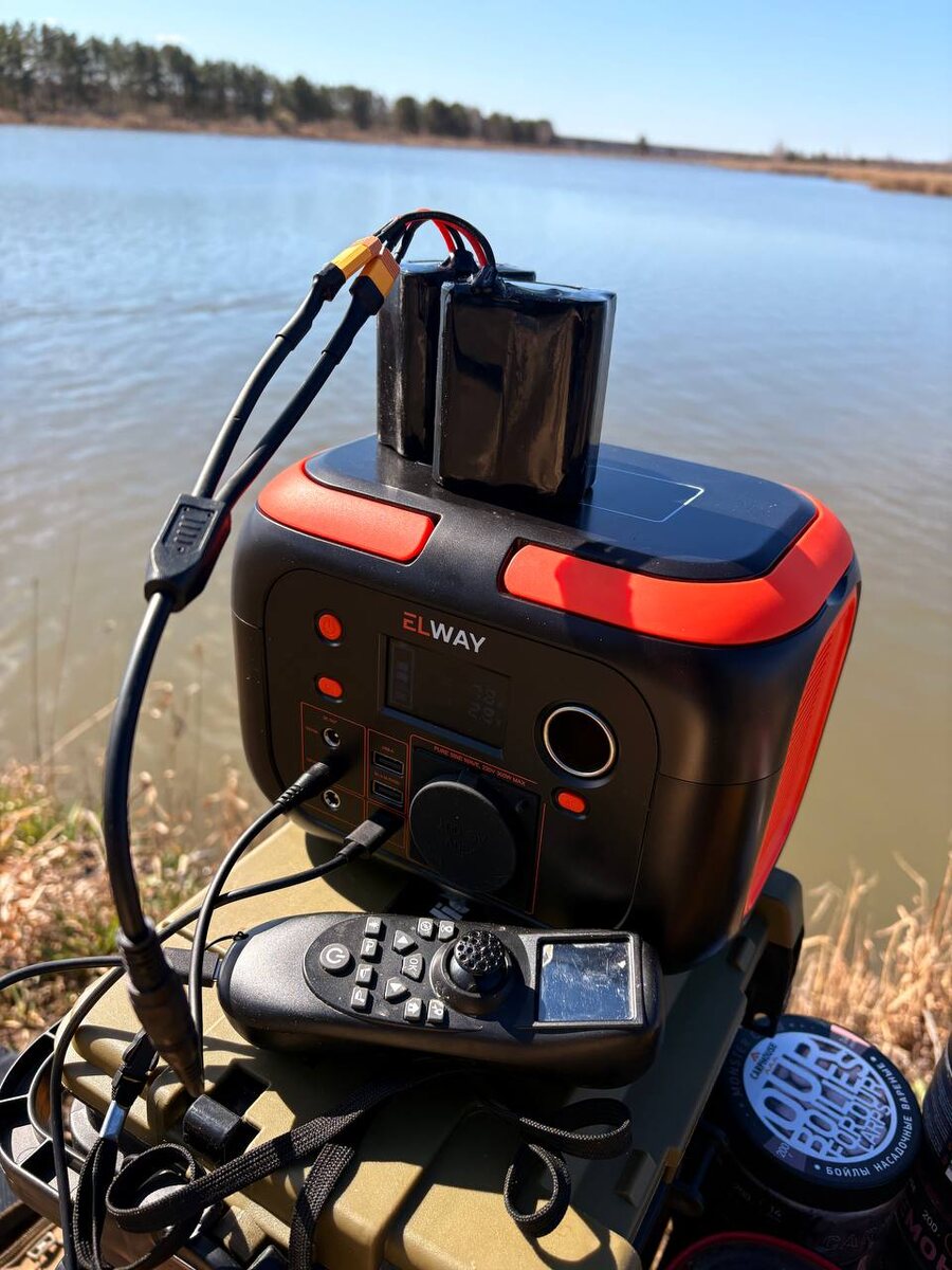 портативная электростанция Elway E03. Это компактная станция, которую можно просто взять с собой — как ещё один аксессуар к рыбалке.