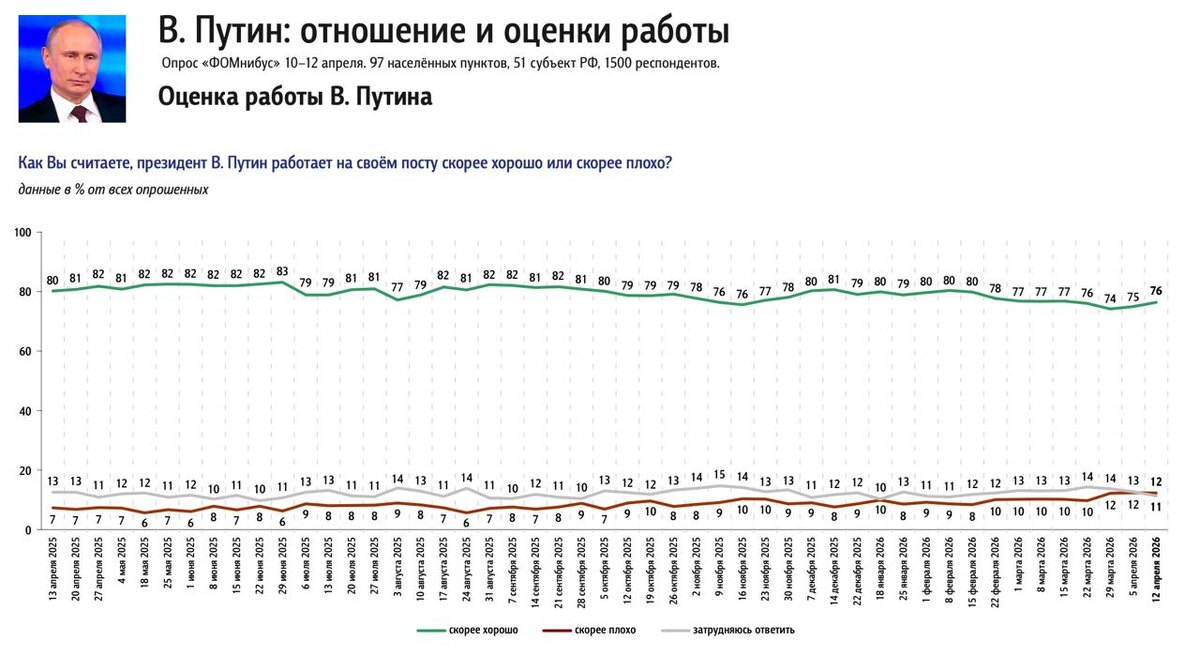Результаты еженедельного опроса 10 – 12 апреля 2026 года.