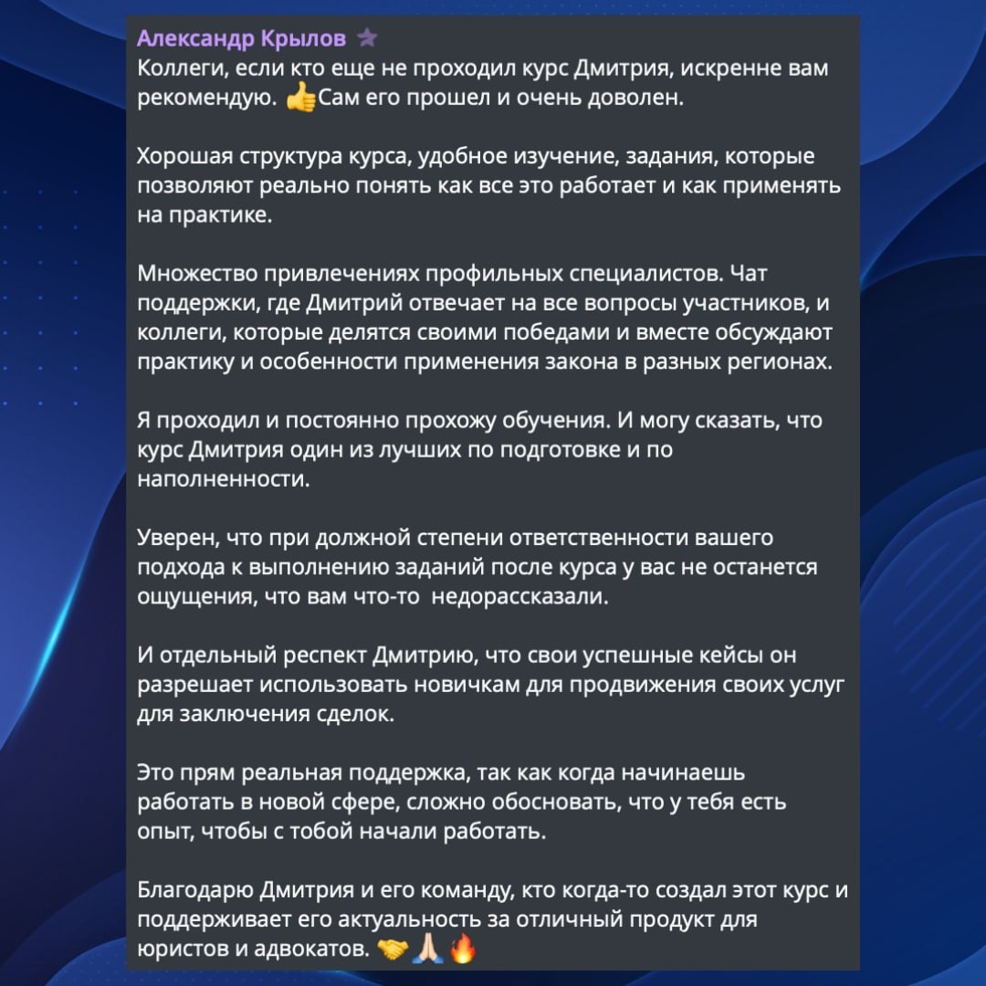 Ребят, напоминаю: сегодня+завтра+воскресенье — последние дни, когда на действующую версию моего курса по оптимизации налогов на недвижимость действует промокод ВТЕМУ30 и скидка 30% на все тарифы. Ссылка на курс: http://course.dmitryzhelnin.ru/ И, кстати, на дня под постом прилетел вот такой комментарий от коллеги, который курс уже проходил ☝️ Меня в этом отзыве особенно зацепили две вещи 🤗 Первая: курс не оставляет ощущения, что вам «что-то недорассказали». Вторая: он реально помогает не просто понять тему, а начать применять её в работе и продавать такие услуги клиентам. Для меня это очень важный маркер. Потому что я и делал этот курс не как «ещё один образовательный продукт для галочки». А как рабочий инструмент для тех, кто хочет: ✅ разобраться в налогах на недвижимость, ✅ научиться видеть у клиента реальные возможности экономии, ✅ зайти в тему эффективного оспаривания кадастровой стоимости, ✅ и в итоге на этой экспертизе зарабатывать 💰 Промокод ещё раз: ВТЕМУ30 Выбирайте