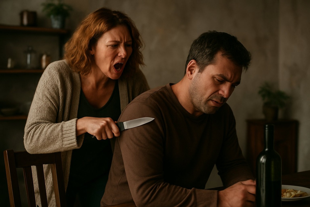 51-летняя женщина устроила дома застолье и пригласила знакомых — мужчину и женщину. Но во время распития алкоголя между хозяйкой и 57-летним гостем вспыхнула ссора. Нетрезвая женщина схватила нож и ударила мужчину в спину. С колото-резаной раной пострадавшего госпитализировали. В отношении агрессивной хозяйки возбуждено уголовное дело по статье «Умышленное причинение тяжкого вреда здоровью с применением предмета, используемого в качестве оружия». Фото: ИИ