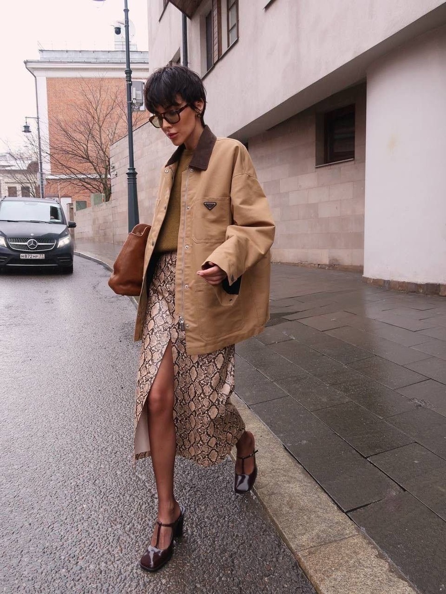 Сегодня змеиный принт можно встретить в юбках, брюках, обуви, сумках и даже плащах. То есть этот принт прям активно набирает обороты и становится заметной частью гардероба.