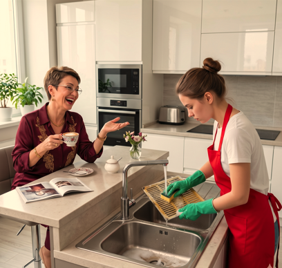 — Не шоркай так монотонно, у меня от этого звука голова начинает раскалываться, — недовольно протянула Римма Эдуардовна. Она сидела за кухонным островом, лениво помешивая ложечкой пенку в чашке капучино. — Ты опять поставила чашки ручками влево. Я три года пытаюсь приучить тебя к элементарным правилам сервировки. Все без толку.
