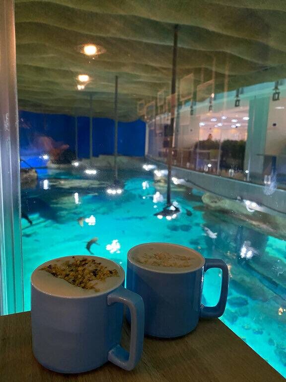 🦈 На ВДНХ есть очень приятная кофейня с панорамой на аквариумы Москвариума — и да, ради этого не нужен отдельный билет в сам океанариум. Можно просто зайти на кофе и устроить себе красивую паузу с видом на акул, скатов и пираний. Если столики у окна заняты, проходите дальше и поворачивайте направо — там обычно спокойнее и свободнее. Для короткой остановки это, по-моему, очень удачный вариант: место необычное, а ощущение такое, будто вы на мини-выезде куда-то далеко 🌊 Адрес: проспект Мира, 119, стр. 23 Время работы: ежедневно с 10:00 до 22:00 Сохраняйте, если любите находить в Москве места с вау-эффектом. Подпишитесь на канал