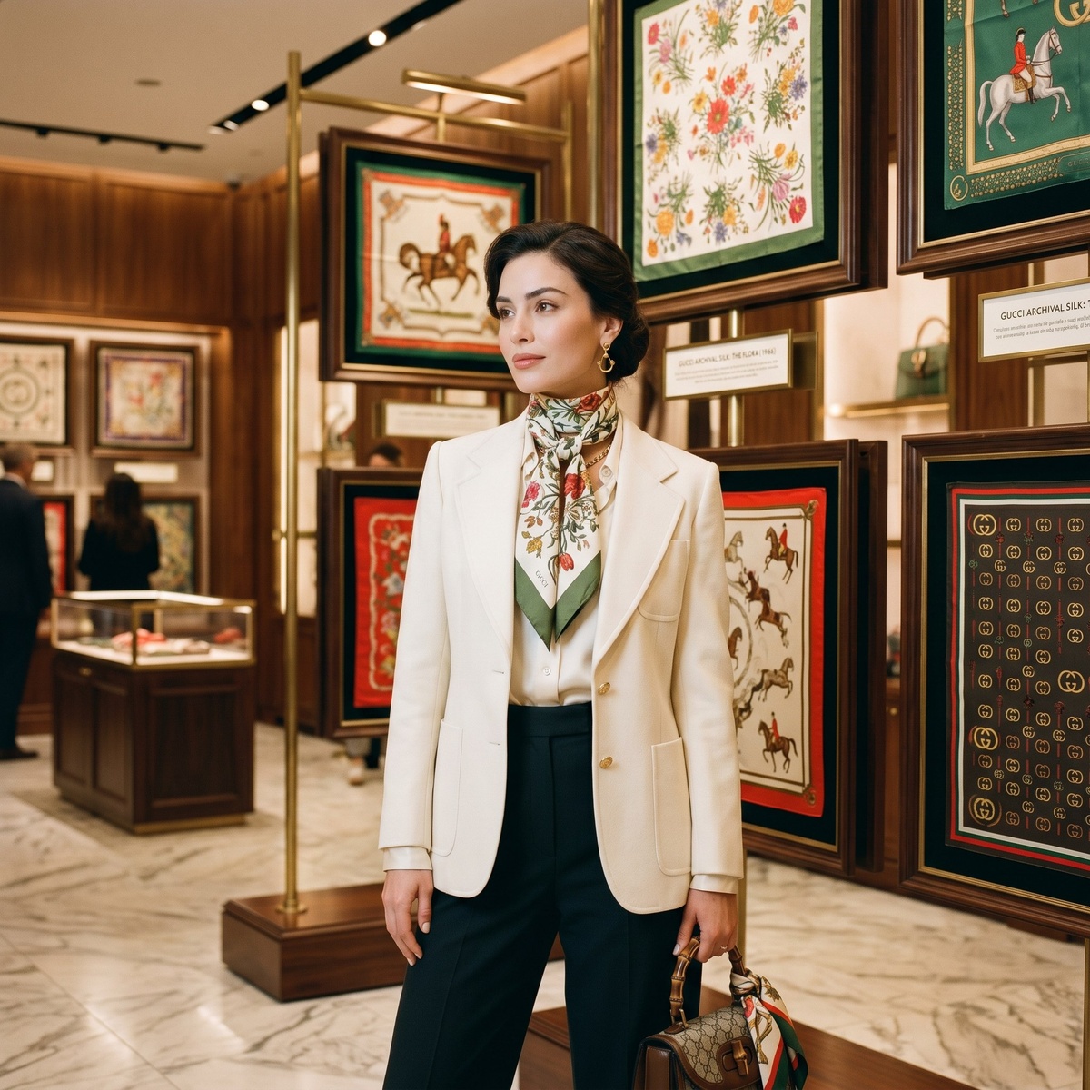 Gucci снова напоминает, что шарф — это не «аксессуар для мамы», а маленькая переносная драма