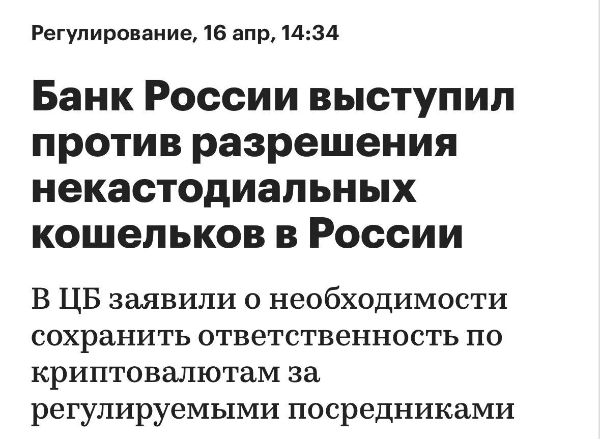 ЦБ выступает против того, чтобы граждане пользовались некастодиальными кошельками. Если по-простому, это кошельки, где ключи и полный контроль у тебя самого. Регулятору ближе схема, где операции идут через посредника, который отвечает за учет, контроль и выполнение правил. При этом хранить крипту на зарубежных кошельках россиянам не запрещают, но такие активы нужно декларировать для легальных сделок. Моя мысль такая. Крипту в России готовы терпеть, но не в формате “сам себе криптобанк”. То есть пользоваться можно, но свободы хотят оставить ровно столько, чтобы все это было видно, считаемо и под контролем. Telegram | YouTube | Все гайды