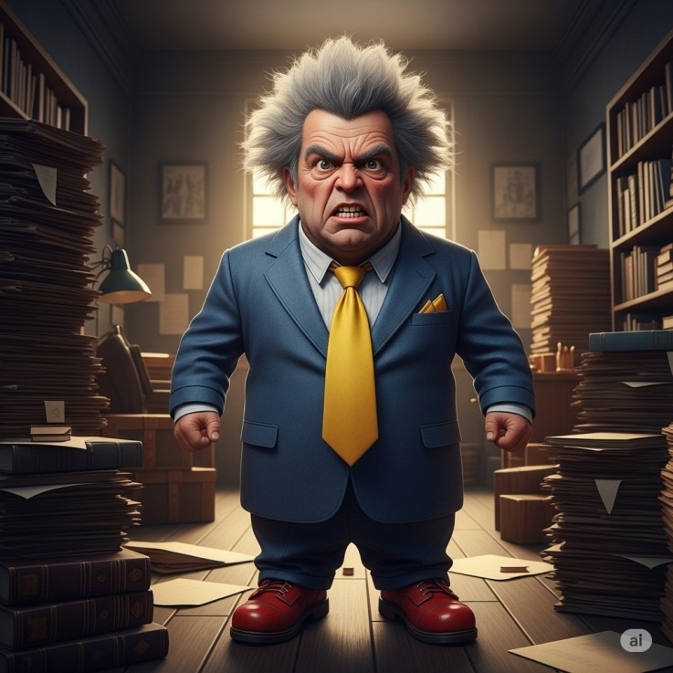 Пончик тоже шаркнул ножкой и поприветствовал Самого-Самущего, которого не сразу и разглядел. Тот сидел за большим письменным столом, заваленным множеством бумаг, книг и свитков. Он важно кивнул и вдруг исчез. Оказалось, он просто слез с высокого стула, а когда вышел из-за стола, Пончик увидел, что Самущий совсем маленький – даже меньше Ханичи! Выглядел он как человек, которого слегка сплющили, надавив сверху, потому что был каким-то широким, хотя и не толстым. Одет он был в ярко-синий костюм с желтым галстуком, разрисованным – это Пончик потом разглядел – мелкими мышками и птичками разных цветов. Седоватые волосы Самущего стояли дыбом, что несколько прибавляло ему роста, так же, как и башмаки на толстой красной подошве.