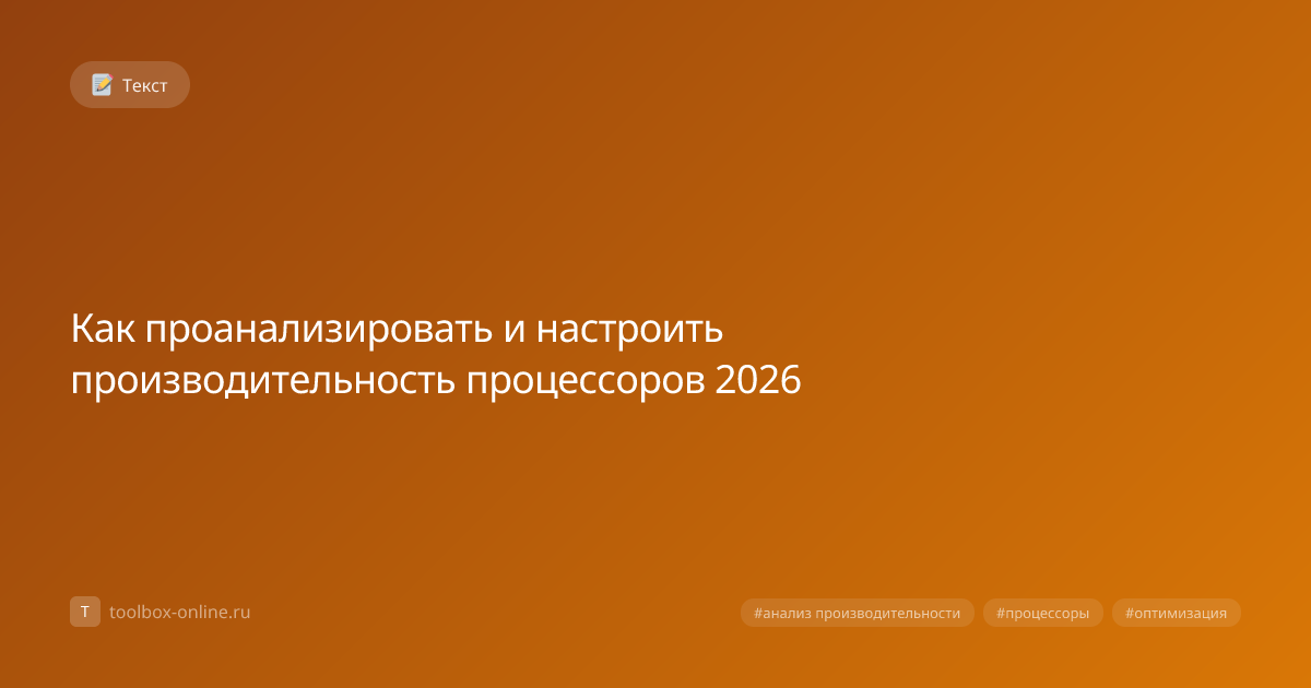 Анализ и настройка производительность современных процессоров в 2026 году можно выполнить за 15‑30 минут, используя встроенные профилировщики, онлайн‑инструменты Toolbox‑Online и проверенные методики оптимизации кода. Первичные метрики собираются за 5 секунд, а детальная настройка требует не более 20 минут. Такой подход позволяет увеличить эффективность вычислений до 30 % и снизить энергопотребление на 12 %. Начните с базового профилирования, запустив системный монитор и собрав метрики нагрузки за 10 секунд. Это даст представление о текущей загрузке ядер, частоте тактов и температуре. Далее следует сравнить полученные данные с рекомендациями производителя. Тепловые ограничения напрямую влияют на частоту процессора и, следовательно, на производительность. В 2026 году большинство мобильных и настольных процессоров работают в диапазоне 45‑95 °C, а каждый градус выше 80 °C уменьшает тактовую частоту в среднем на 0,3 %. Сразу приступайте к локализации «горячих точек» и их рефакторингу. Удал