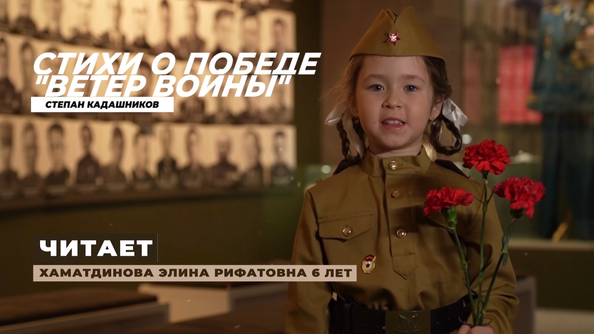 Новое видео. Победа на конкурсе чтецов. Стихотворение Степана Кадашникова «Ветер войны» читает Хаматдинова Элина, 6 лет, город Казань.