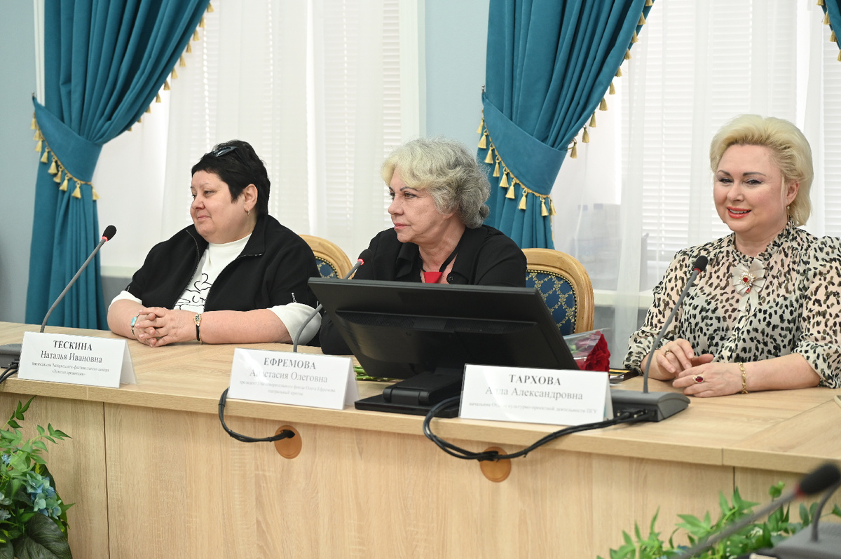 Гостями проекта Пензенского государственного университета «Творческая мастерская. Встреча с интересными людьми» 16 апреля стали президент Благотворительного фонда Олега Ефремова, театральный критик, председатель жюри Международного театрального фестиваля «Золотая провинция» Анастасия Ефремова и председатель Театрально фестивального центра «Золотая провинция» Наталья Тескина.