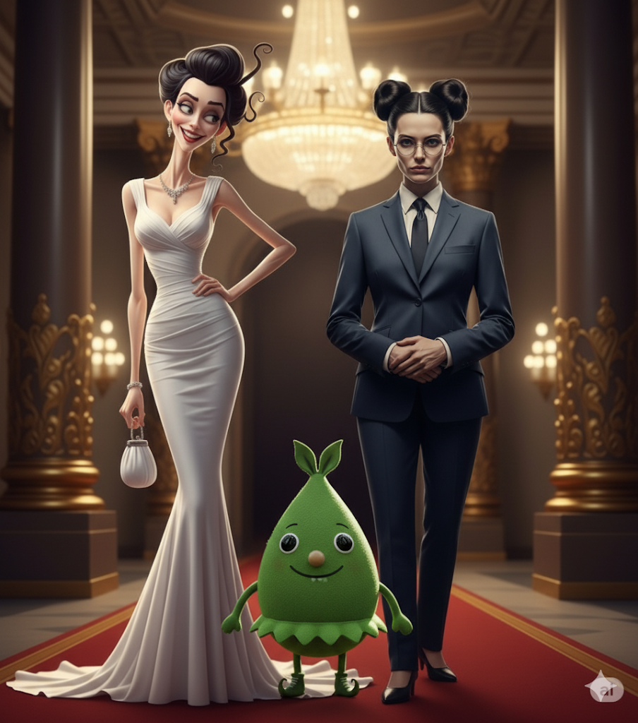 Вдруг собачка, до этого сидевшая у ног Пончика и умильно на него смотревшая, сорвалась с места и с громким лаем помчалась в прихожую, откуда доносились какие-то неясные звуки. Джонатан не успел сделать и шагу, как в гостиную вошла целая процессия: первой показалась Ханича, грозно размахивающая своей раздвоенной палочкой, за ней – хихикающая Мильда, следом – Звездочутка все в том же сверкающем и звенящем бальном платье.