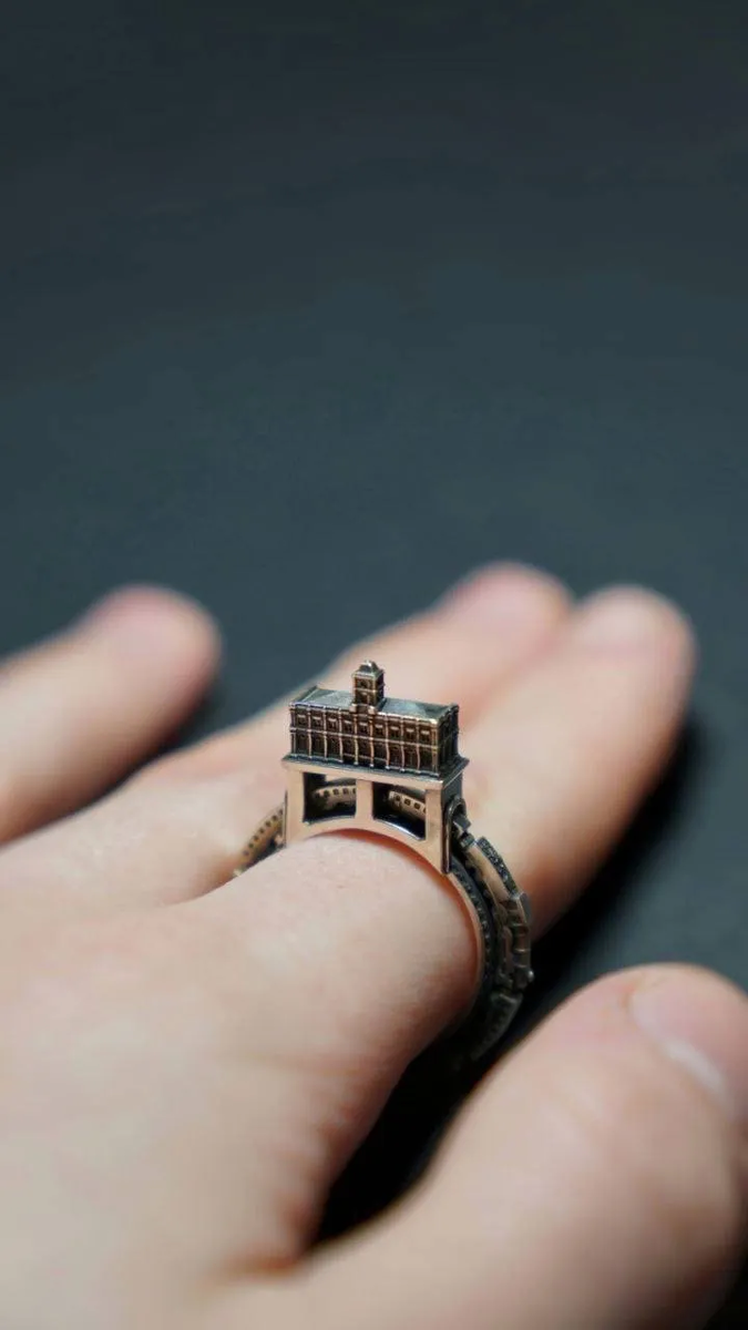 Архипу Щепину 16 лет, и он отливает в серебре вестибюли московского метро. Не стилизует, не упрощает до силуэта — делает миниатюрные постройки, которые носят на пальце: «Красные ворота», «Арбатская», «Комсомольская», «Парк культуры», «Чистые пруды», Ярославский, Ленинградский и Казанский вокзалы. На кольце стоит павильон с карнизом, колоннами и буквой «М» — ровно тот, мимо которого ты проходишь каждое утро. Меня завораживает это новое поколение русских авторов. Они не ждут институций, грантов и согласований — просто берут любимый город, разбирают его на детали и собирают заново в том масштабе, в котором можно унести с собой. За такими ребятами, как Архип (канал), хочется следить, радоваться им и покупать — пока это штучная работа, а не тираж. Недавно писали про кулон Sevenworlds, собранный по чертежу церкви Покрова на Нерли — там та же логика: архитектура как украшение.