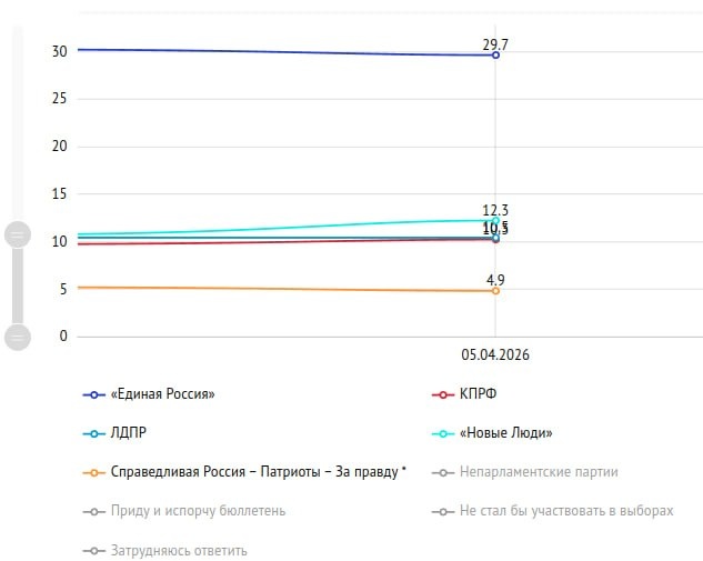 5 Апреля ВЦИОМ (Всероссийский центр изучения общественного мнения) опубликовал рейтинг партий, основанный на опросе "Скажите, пожалуйста, если бы в ближайшее воскресенье состоялись выборы в Государственную Думу России, за какую из следующих партий Вы бы, скорее всего, проголосовали?" В апреле лидером рейтинга является партия "Единая Россия", с результатом 29,7%, однако её рейтинг последнее время стабильно снижается. А вот у партии "Новые Люди" последние месяцы рейтинг стабильно растёт и в апреле составил 12,3%, что обеспечивает уверенное второе место в общем рейтинге, и приличный отрыв от КПРФ (10,3%) и ЛДПР (10,5%). Рост рейтинга "Новых Людей"- это результат уже проделанной системной, большой работы. В действующем парламенте пока у этой партии немного депутатов, но и даже в таком меньшинстве они проявили себя, если не как "львы", то уж на звание "слонов- тяжеловесов" вполне наработали! Обычные граждане оценили, увидели эту работу и готовы выразить свою поддержку на выборах. На фо