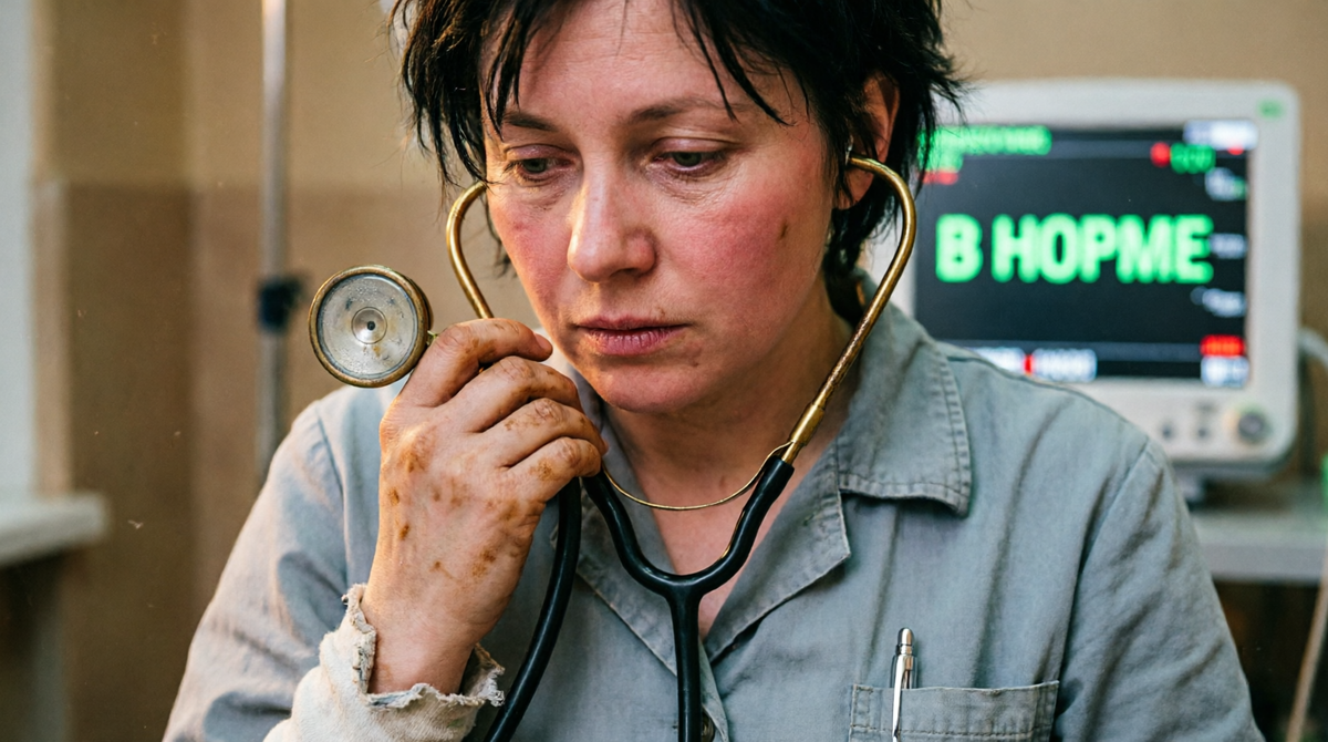 У меня нет мониторов. У меня есть стетоскоп бабушки — тяжёлый, холодный, с трещиной в мембране. У меня есть руки, которые помнят двадцать тысяч касаний. У меня есть нос, который знает смерть за час до её прихода.