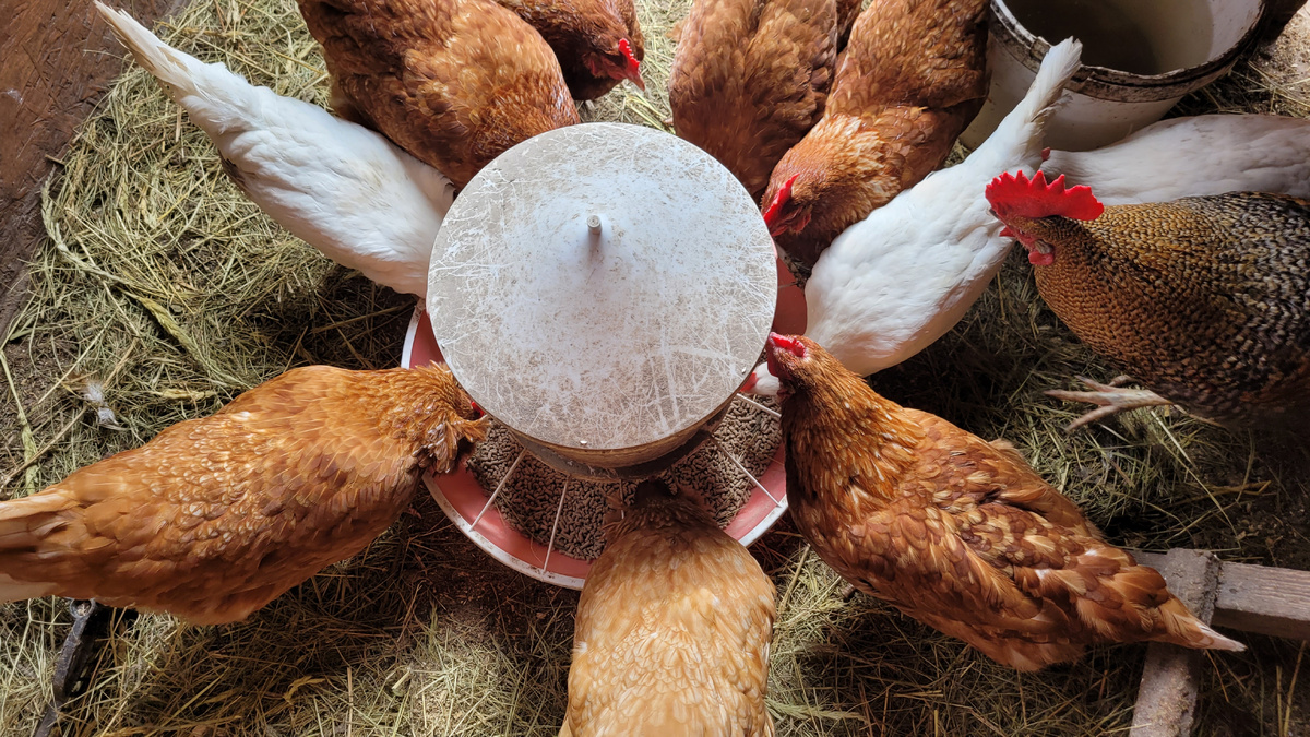В загоне кормлю их семечками. Так за сеткой носятся курочки. Пока поняли, что надо оббежать сетку и попасть вовнутрь, - уже и семечки закончились. 😃