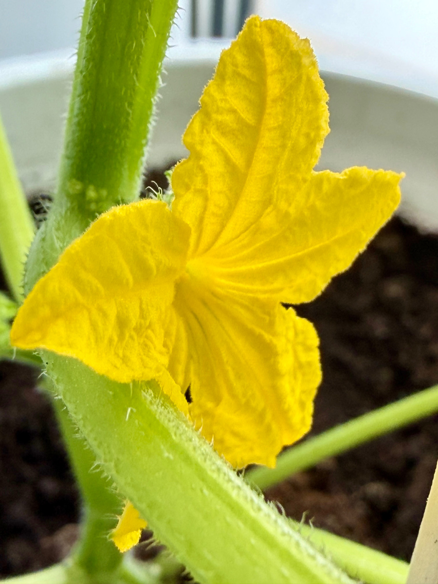 Вова вчера смастерил конструкцию из деревянных палочек для суши и скотча. По мере роста будем наращивать. Только два огурца из семи пока не выпустили стрелки. А у одного до сих пор два первых листа не засохли, так интересно.