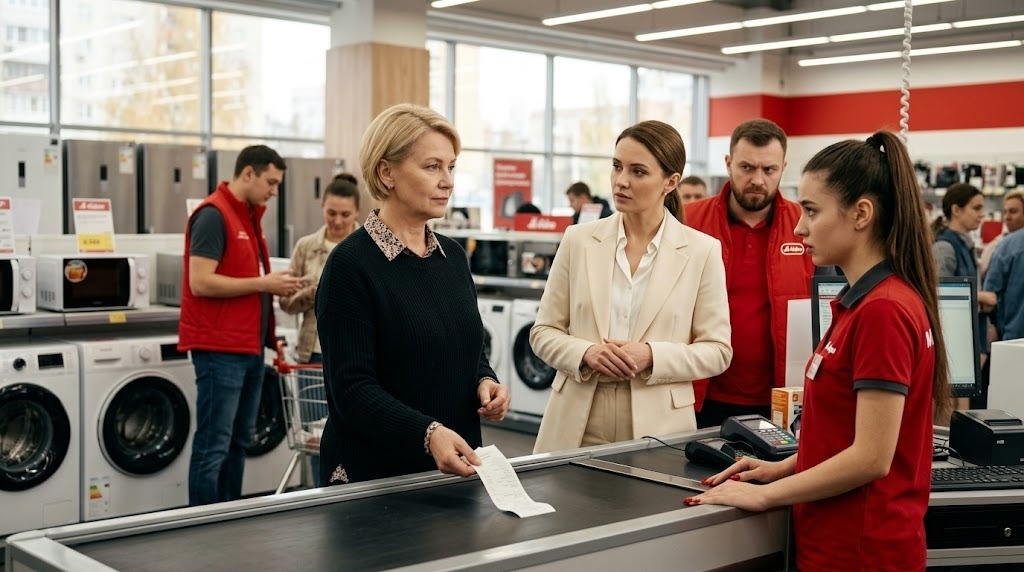 Анжела уставилась на бумагу. Потом на меня. Ленту кассы она не остановила, и чек поехал под сканер сам, будто спешил туда, где его давно ждали.