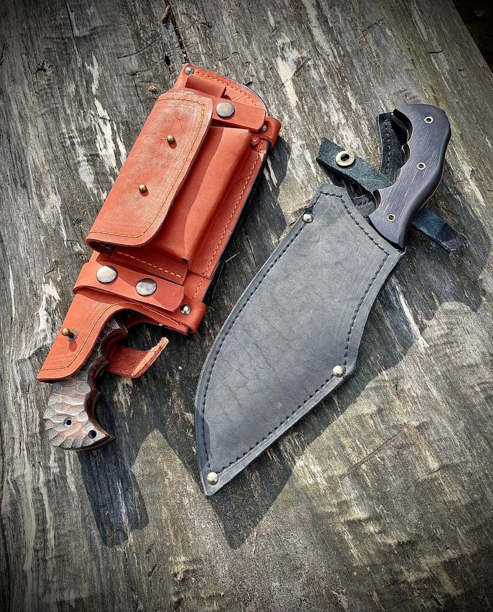 Вроде и погода налаживается ⚔️😎 Достаём своих рубак и чешем в лесок ⚔️🏔 Сегодня у нас — пост по бушкрафту ⚔️☝️ Белый и Чёрный Ракшасы ⚔️👊 Данная модель развилась из всем известного киноножа «Трекер» и под воздействием новых веяний моды ⚔️🛡 обрела более агрессивный вид ⚔️👊, удобную, почти пистолетную рукоять ⚔️👊 Белый зверюга из D2, с полимерной рукоятью тёплого коричневого цвета ⚔️😎 Укомплектован тактическими ножнами горизонтального ношения ⚔️👌 Из просто красивейшей рыжей кожи ⚔️👊 Интереса ради сам полдня проходил с таким: думал, нож «тянуть» будет, но как приятно, когда ошибаешься в таких случаях ⚔️😂 А за спиной такой носить — вообще шикарно ⚔️😎👌 Ну и строгий, злобный рубака в полностью чёрном исполнении из высокоуглеродистой стали с обычными чёрными ножнами ⚔️💪🏻 Всех с пятницей 🤝👍 #нож В этом посте есть большое видео, которое не загрузилось в Дзен. Откройте оригинал поста в телеграме, чтобы его посмотреть