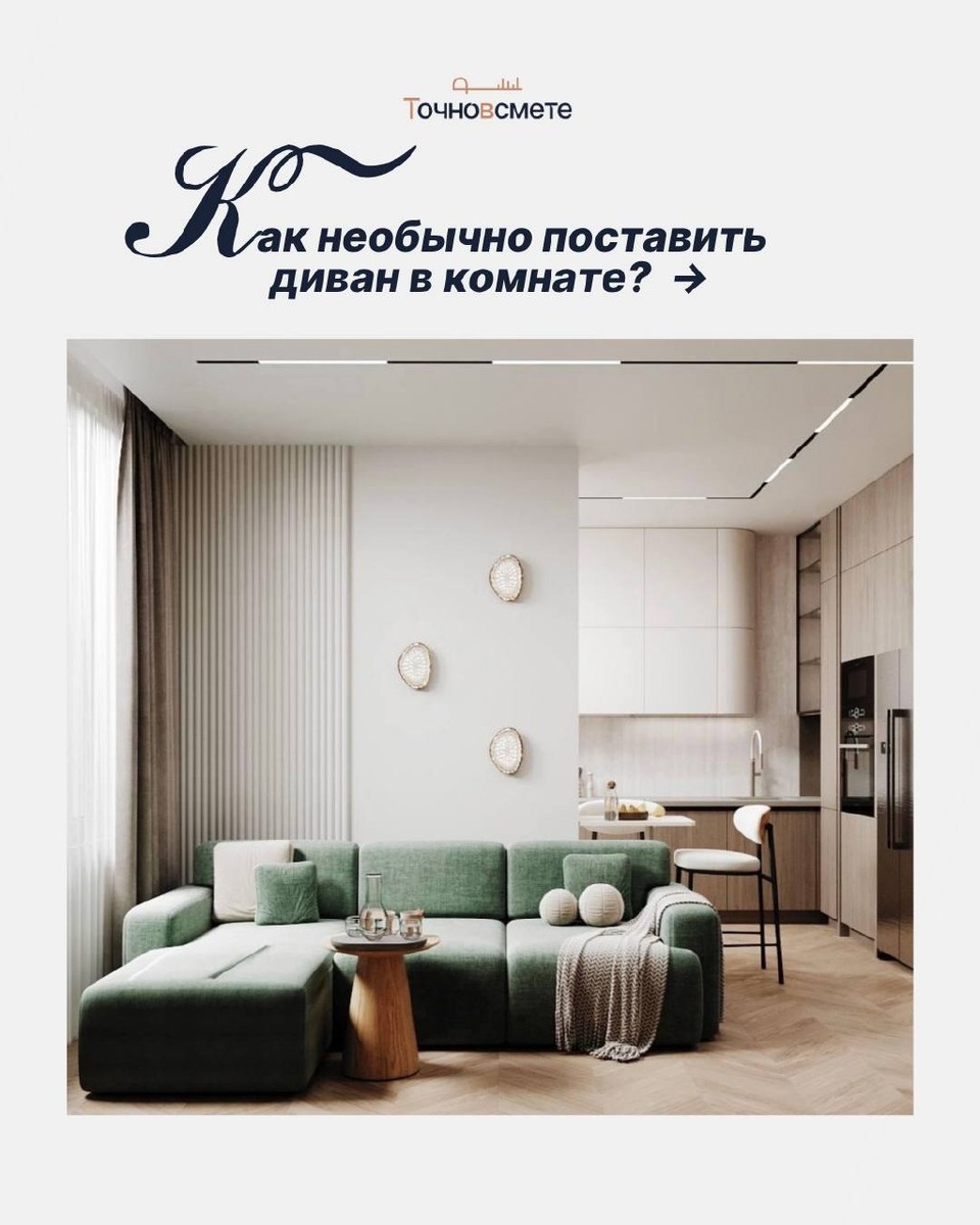 ? Сегодня интерьер гостиных продумывают иначе: диван располагают в центре комнаты или в качестве перегородки. Так квартира сразу начинает выглядеть иначе, иногда более продуманным становится интерьер, а внутри удобнее перемещаться. А главное – для такого зонирования не нужны большие метры. Даже в небольшой квартире можно выстроить гостиную так, чтобы она осталась просторной и комфортной. В карточках показали приёмы, которые реально работают 👆 Сохраните, чтобы не потерять, и забирайте смету для вашего ремонта по ссылке)
