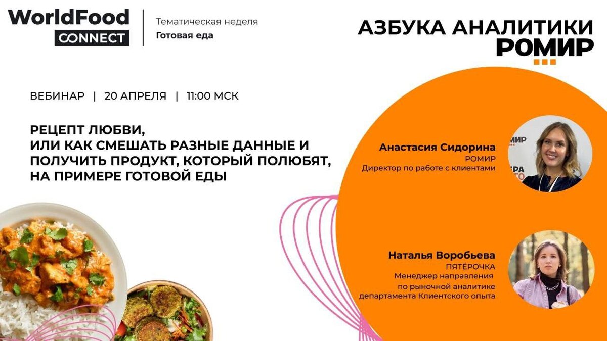 20 апреля в 11:00 (МСК) состоится новый вебинар проекта «Азбука аналитики», посвященный одному из самых динамичных сегментов потребительского рынка – готовой еде. Эксперты РОМИР и «Пятёрочки» покажут, как сочетание панельных данных о продажах и опросной аналитики помогает точнее понимать покупателя, находить точки роста и создавать продукты, которые действительно востребованы рынком. В эфире выступят: – Анастасия Сидорина, директор по работе с клиентами РОМИР – Наталья Воробьева, менеджер направления по рыночной аналитике департамента клиентского опыта «Пятёрочки» Участники вебинара узнают, как меняется категория готовой еды, какие сегменты растут быстрее других, чего ждет покупатель от брендов и насколько рынок готов к новым форматам, нишевым предложениям и расширению ассортимента. 🔗 Регистрация – по ссылке. Подписывайтесь на канал РОМИР | Читайте нас в MAX | Дзен | Думайте вместе с Андреем Милёхиным