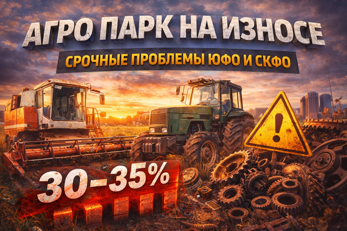 Юг России входит в 2026 год с критическим состоянием машинно-тракторного парка. Износ сельхозтехники в ключевых аграрных регионах достиг: 👉 30–35% При этом, по оценкам экспертов, при текущем уровне поддержки обновление техники может занять: 👉 до 100 лет Это уже не проблема отрасли.