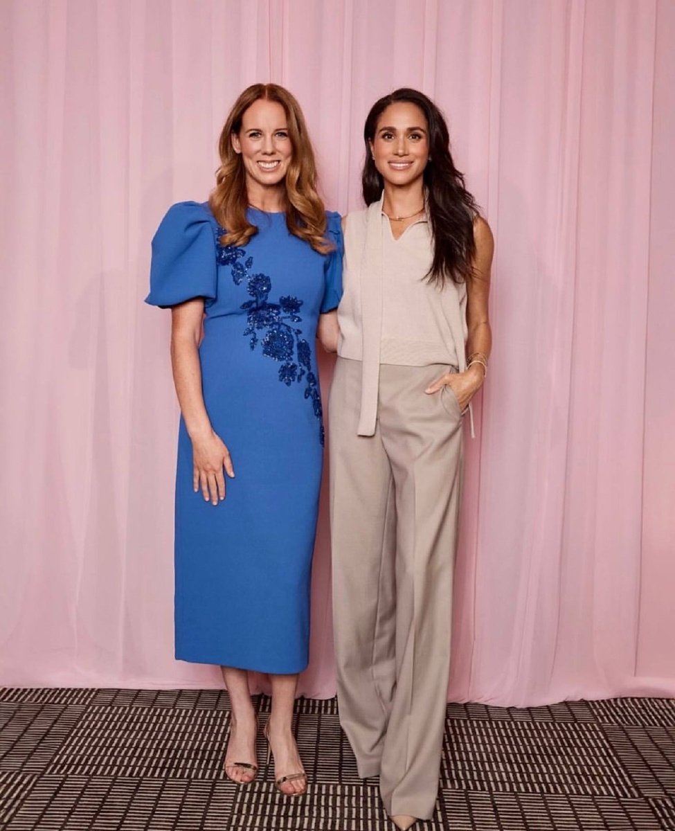 ). На этот раз в беседе с Эммой О’Нилл, где герцогиня предпочла нейтральные оттенки образа, которые так ей надоели за время пребывания в королевской семье. Как вам образ Меган?