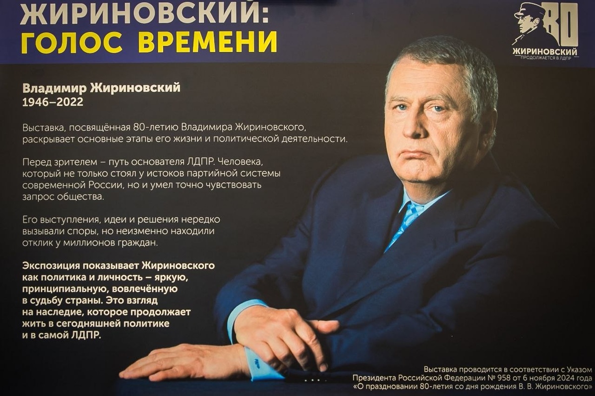 ! В Законодательном Собрании края начала работу выставка, посвященная 80-летию со дня рождения Владимира Вольфовича Жириновского. Экспозиция посвящена жизни, политической деятельности и общественному наследию одного из самых ярких российских политиков современности. Выставка будет открыта для посещения с 17 по 23 апреля включительно. Для желающих организованы экскурсии. Записаться можно по телефону: 8 (923) 378-18-26. Мероприятие проводится на основании Указа Президента Российской Федерации № 958 от 6 ноября 2024 года «О праздновании 80-летия со дня рождения В. В. Жириновского». В этом посте есть большое видео, которое не загрузилось в Дзен. Откройте оригинал поста в телеграме, чтобы его посмотреть
