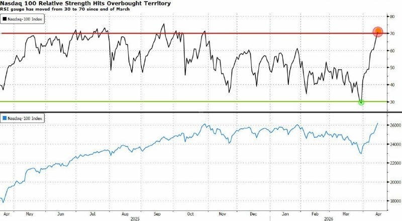 ? За последние 2 недели Nasdaq 100 перешёл из зоны перепроданности в перекупленность, а за апрель 2026 вырос примерно на +12% — лучший результат за 40 лет. Ралли поддержали технологический и полупроводниковый секторы, а также отчеты Apple и Nvidia.Что это значит? Инвесторы видят мощный спрос на техноакции, но растут риски коррекции из-за перегрева рынка. Технологичный сектор остаётся в центре внимания, но стоит осторожно фиксировать прибыль.Держим лонг по технологиям, но внимательно следим за свечными паттернами и публикациями отчетов. Ждём новых сигналов для входа или выхода.Держим или сливаем? #новости #БезПафосаФинансы #Nasdaq100 #технологии #БПФ_Day